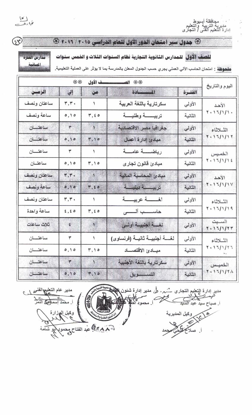 اسيوط فيس توك بالصور جدول امتحانات ثانوية اسيوط تجارى صناعى زراعى فندقى للفصل الدراسى الاول 2015 2016