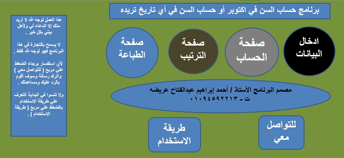 برنامج حساب السن فى اول اكتوبر تحميل برنامج حساب السن لرياض الاطفال بالتعديل الجديد وطباعة ايصال استلام وتنسيق جميع الصفحات