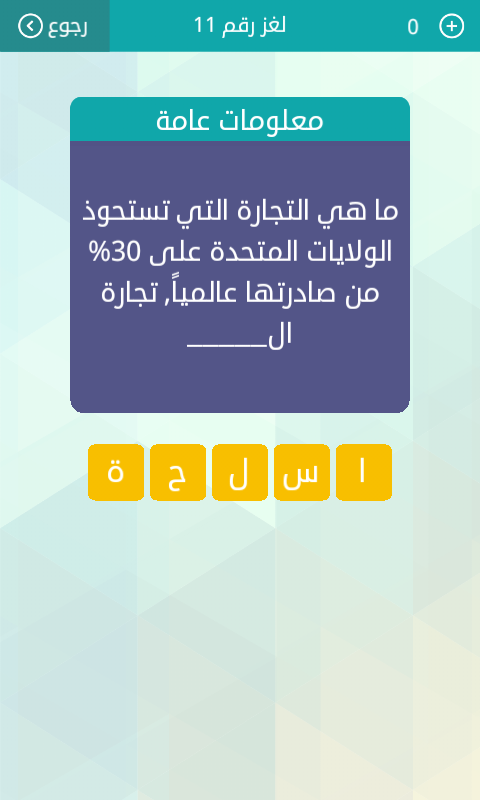 حل ماهى التجارة التى تستحوذ الولايات المتحدة على 30 من صادرتها عالميا من لغز 85 للمجموعة العاشرة من صقور الإبدآع