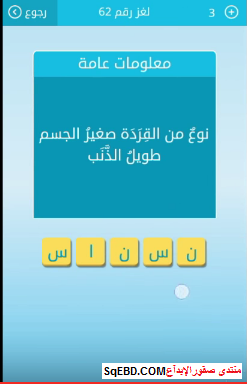جواب سؤال نوع من القردة صغير الحجم طويل الذنب لغز رقم 62 للمجموعة السابعة من لعبة رشفة صقور الإبدآع