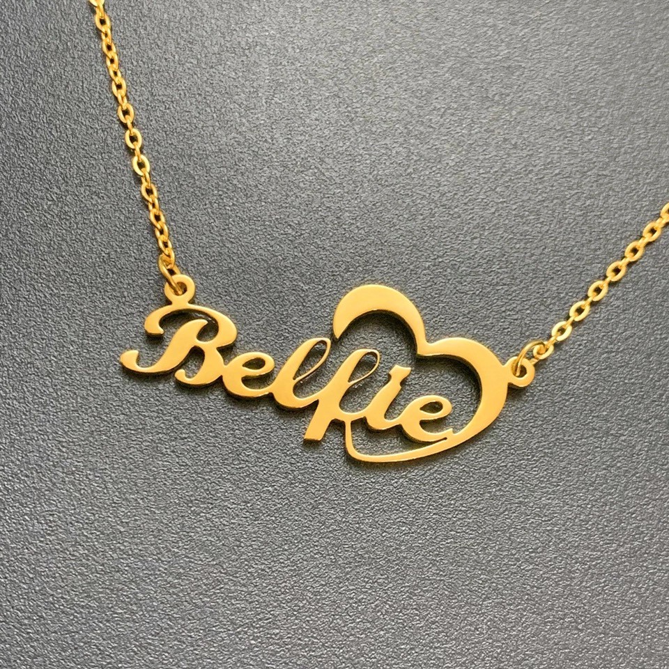 Couple Heart Necklace With Gold Plating My Name Necklace