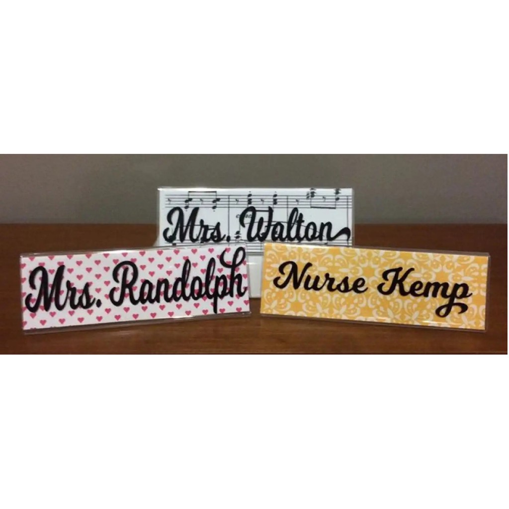 Name plate. Nameplates primarily serve an informative function as in an office environment where nameplates mounted on doors or walls identify employees spaces or a commercial role as in a retail. Shop today online in stores or buy online and pick up in store. Desk name plates from zazzle. Now before you settle down and dive into the new role head first you need to make that new space your own.
